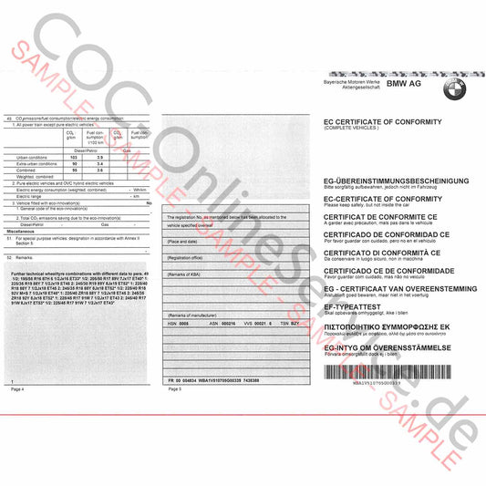 Documento COC para BMW (Certificado de Conformidad)